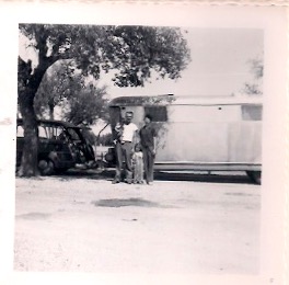 We had no sooner stopped for the night and washed Sandy up when she fell out of her bed. She cried so hard she lost her breath for a second and passed out. We were so frightened. The trailer park man rushed us to the hospital where they misunderstood and tried to put me to bed because Sandy looked fine. There was no doctor on duty so they sent us to the doctors office. He said she was Ok. She did seem to be all right by that time. We returned to the trailer, relieved and exhausted. We washed the dishes, cleaned the refrigerator, made formula and went to bed.